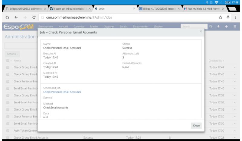 Hi Yuri, congratz on your beautiful work. Diggin´it a lot! I have an issue reg. cronjob and fetching inbound emails. Both my in- and outbound configuration is set up properly. Outgoing email works.Cronjob is set up and executed every 10 minutes. Some of the emails got fetched. After this successfull execution, cronjob continues to run, but with no further emails come in anymore, and without any further log entry. Any idea? (version 2.9)Comment