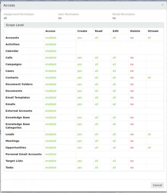 After setting up a general sales team and general sales role with limited assignment, scope and field level permissions, on several occasions the access/permissions for one or more users assigned to this team and role have changed to having full assignment and scope-level permissions. The change in user access occurs without any purposeful change to the user's team or role assignment. This glitch or bug seems to occur randomly when mass updates are made to Accounts, Opportunities and/or Leads, but I'm not sure exactly what is causing this to happen. The attached screen shots show the general sale team and role user settings, the general sales team settings, the general sales role scope and field level settings, and the user's access settings after this glitch occurs.