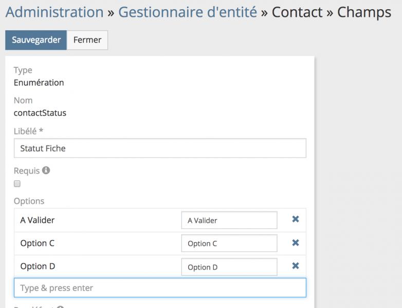 The file custom/Espo/Custom/Resources/metadata/entityDefs/Contact.json has the expected values (one has been cleaned and the new ones are here)