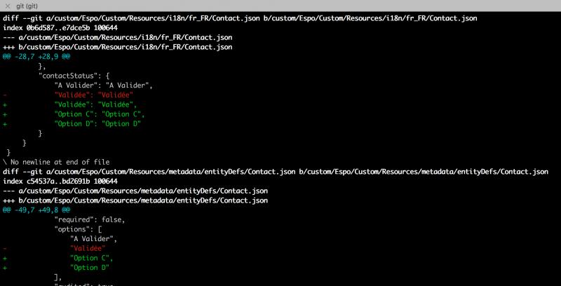 2 files have been updated (here is the git status + git diff command of my project) => OK
