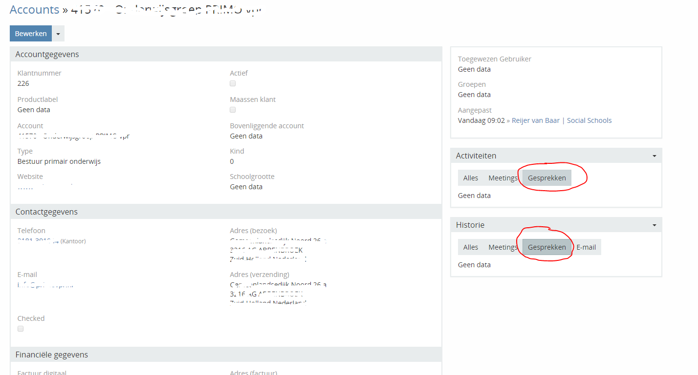Information about (phone) calls and e-mails were shown in this sections in my older version (before upgrading). I thought it had to do with relations from accounts to calls (here 'Gesprekken') and e-mail but cannot find out what else to adjust tot make them visible here again.