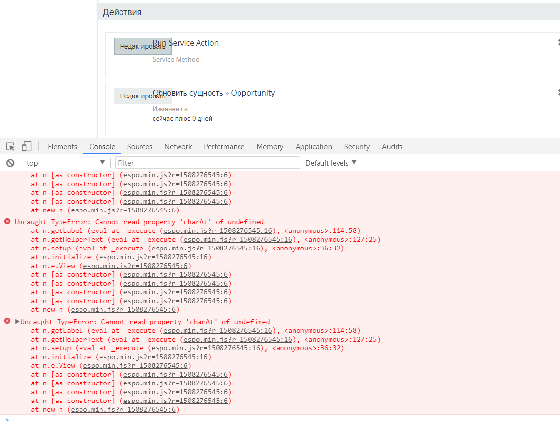 I attached a screenshot of the message in the console that appears after clicking on the button "edit"
