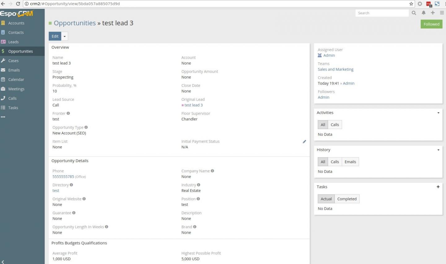 I have attached two screen shots of selecting the new Opportunity from the left menu, and then after pressing the browser refresh button.