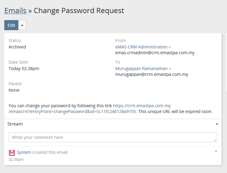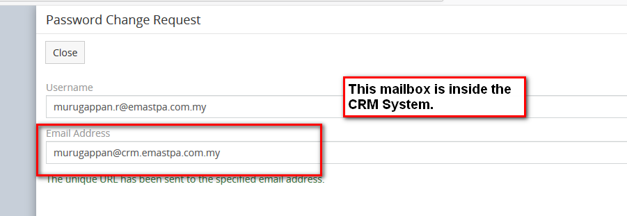 Yes that is the problem. The system insists that the email address must be one in the user record. So how can the user access the email for password reset which was sent to the email address defined inside the system without getting into the system to access the email?