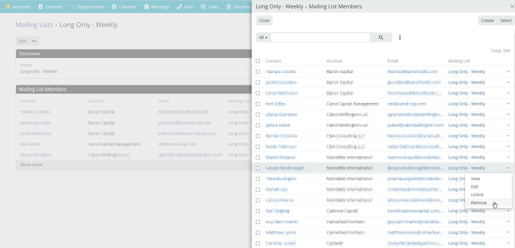 Here we are using a Related List for a custom mailing list entity, but the error is in the default behaviour in client\src\views\modals\related-list.js, not our customisations: