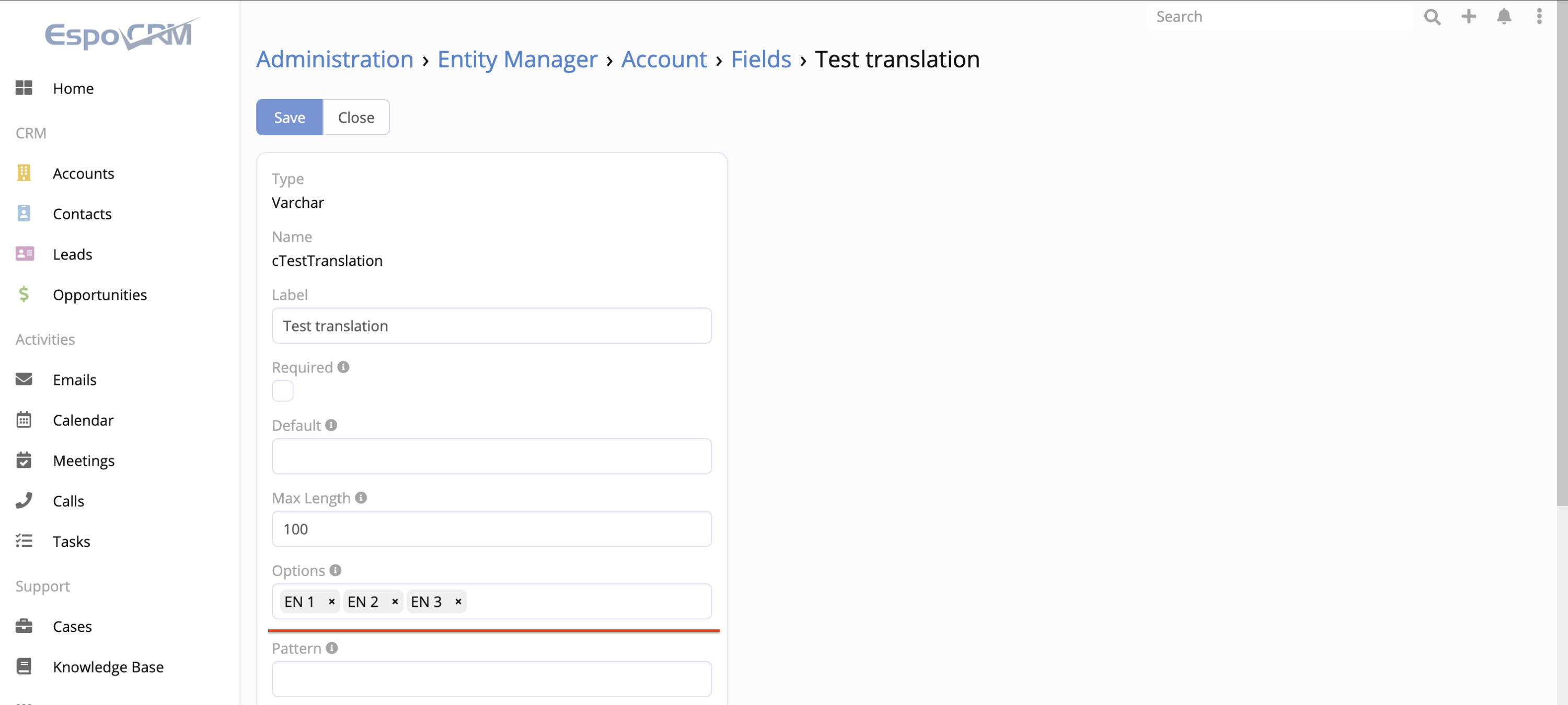 I saw that if you add options for the varchar field, you can also add translations for them. However from what I tested on different instances, it never works. Doesn't matter if you enter the translations manually in the files or through the label manager, they don't get saved (just resets to the original values). Maybe someone has any ideas on how to fix this bug or maybe I am doing something wrong here?