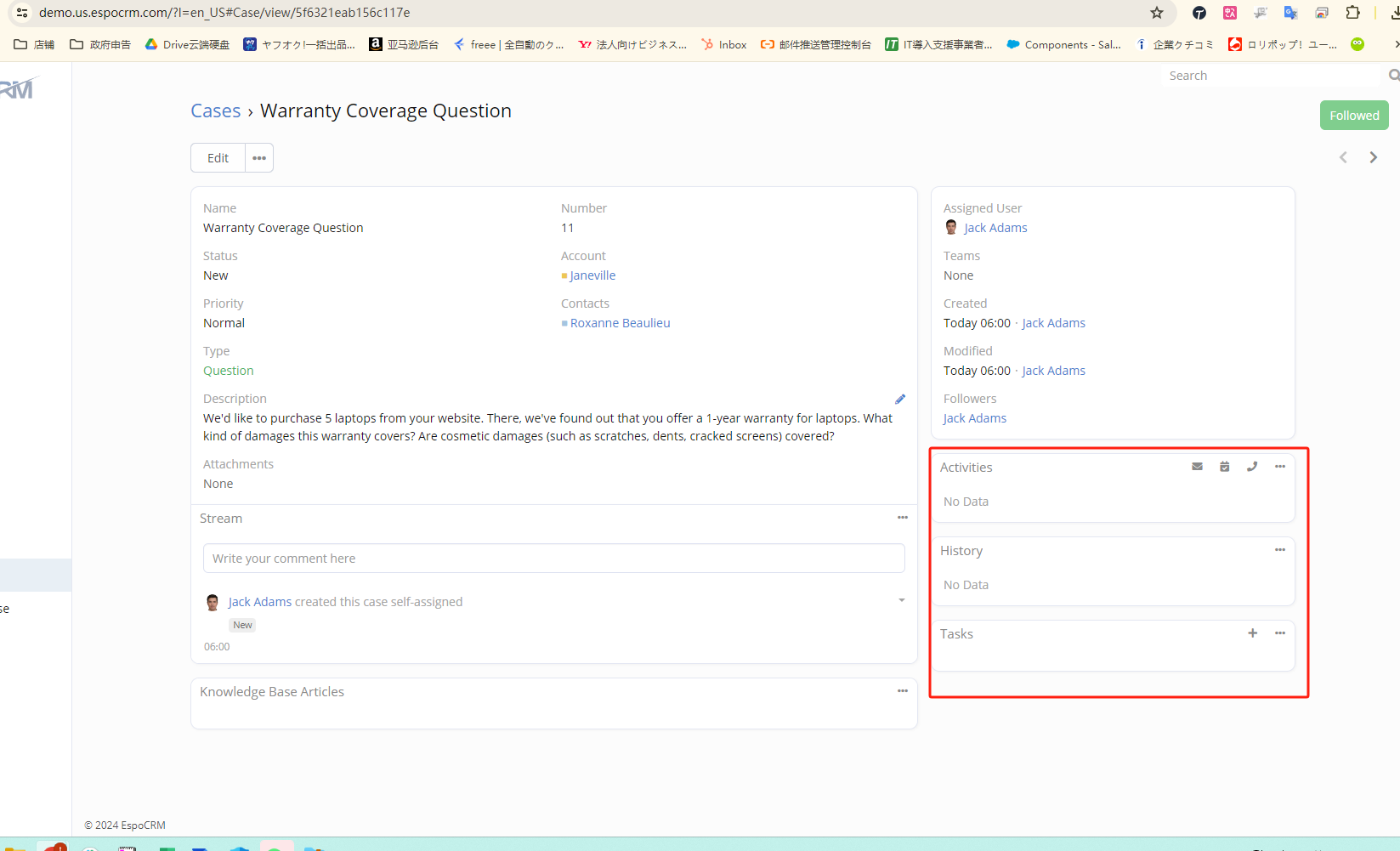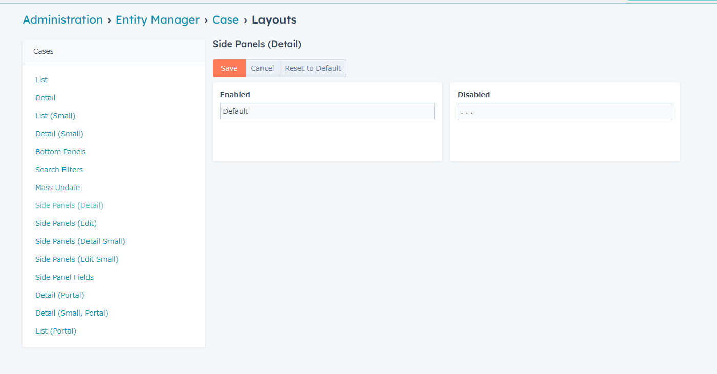 The Activities, History, and Tasks panels have disappeared in the case with an unknown cause, and they cannot be found in Administration > Entity Manager > Case > Layouts.