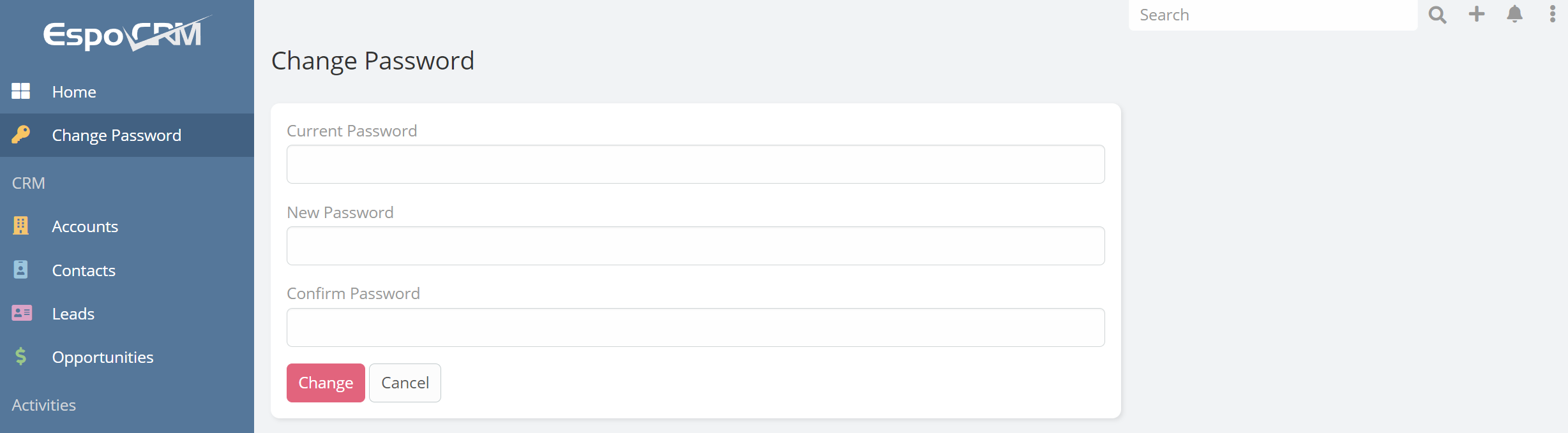 I would like to add a [Change Password] button to the menu. When users click this button, it should open the Change Password page. Currently, this page is located under the "User" section, which many users find difficult to locate. I want it to be displayed in a more prominent position.