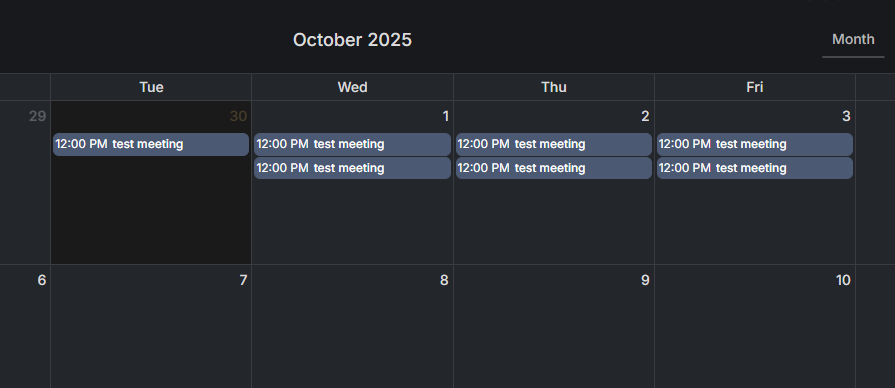 Since espo doesn't come with an ability to make recurring calendar, I was trying to make one myself. So far progress has been going alright, but I ran into a problem. It duplicates any meeting I try making, I don't know what is causing this, so I will share everything I've been working on and screenshots of the process to show what I've done so far.