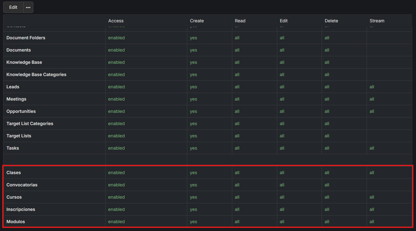 I have created a custom entity in my self-hosted EspoCRM 9.1.9 instance running on my VPS. I also created an API user and assigned it a role that should have access to the new entities. However, when I try to use the API to access the endpoint for the new entity, I get errors and cannot perform any actions.