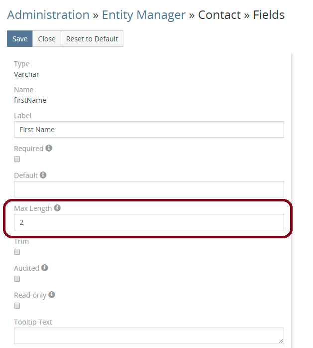 Max length for first name not working in contacts.