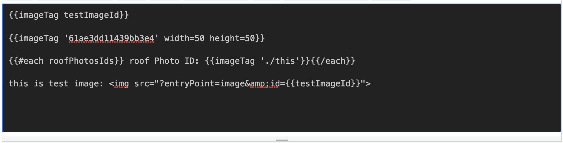 when I use the above line it doesn't show any photos, when I use {{imageIds}} it returns 5cbf164eb8f245ae8,5cbf165be263d61e6,5cbf16654f0f60 6d8,5cbf1668e50359b69,5cbf166c60013a7 a3,5cbf187aa2ae037c7,5cbf187ec89466199