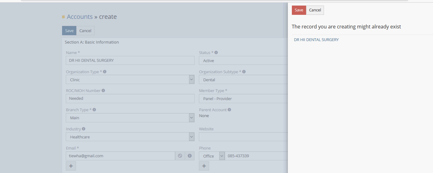 When we enter that record twice for entity type "Comany" and "Person", the system checks and alert a warning that the record is duplicate (see screencap1 attached). This does not happen with any other entity types. How can i enable the duplicate check for such entities?