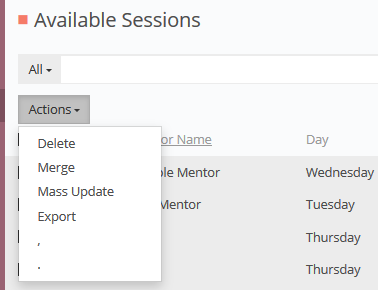 "FYI using espocloud, not able to add code in the backend" ---; So the client needs a way to post available tutoring sessions that portal users can book - I thought I'd use Meetings - was working great until they discovered "Set and Held" options in the Actions and Edit menus and the end of each row.
