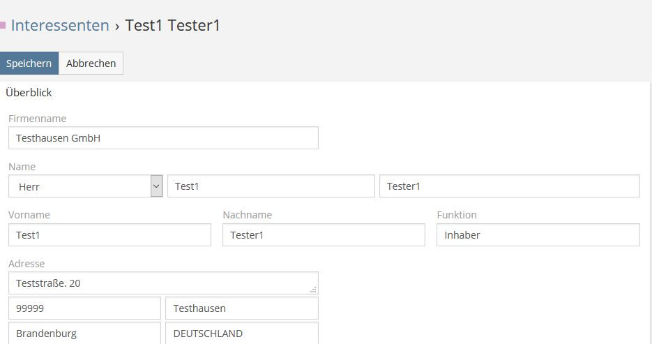 If I now fill in all the fields, the system shows me the name from the name fields in the title at the top.