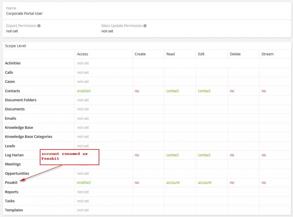 (3) Created a Portal Role - See attachment (note the Account entity (Pesakit) does not allow "contact" owner ship.