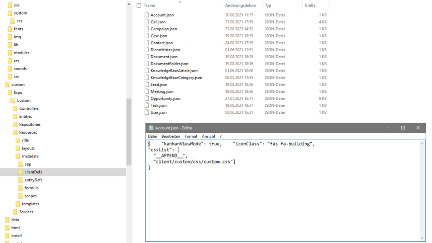 Modify or create file: /client/custom/css/custom.cssCode:"cssList": [ "__APPEND__", "client/custom/css/custom.css" ]