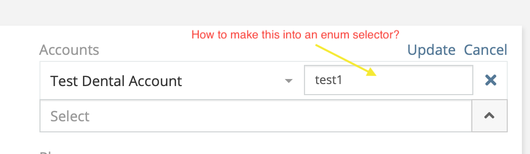 Hello, This question is similar to the Github discussion shown below. I would like to achieve similar functionality for the "Account" Contacts but I'm having difficulty making this work. Essentially, if you look at the image below I would like to be able to specify an enum for the Contact Role when adding new Contacts to an account. Thank you very much for your time and consideration.
