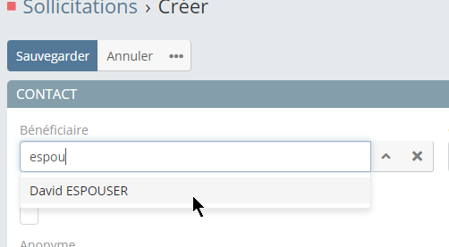 But I would like, when I click on the select button of the field, to open the modal select-record window, already filtering on the name entered in the contact field (if it is empty, the window lists all the contacts as at present) like this :
