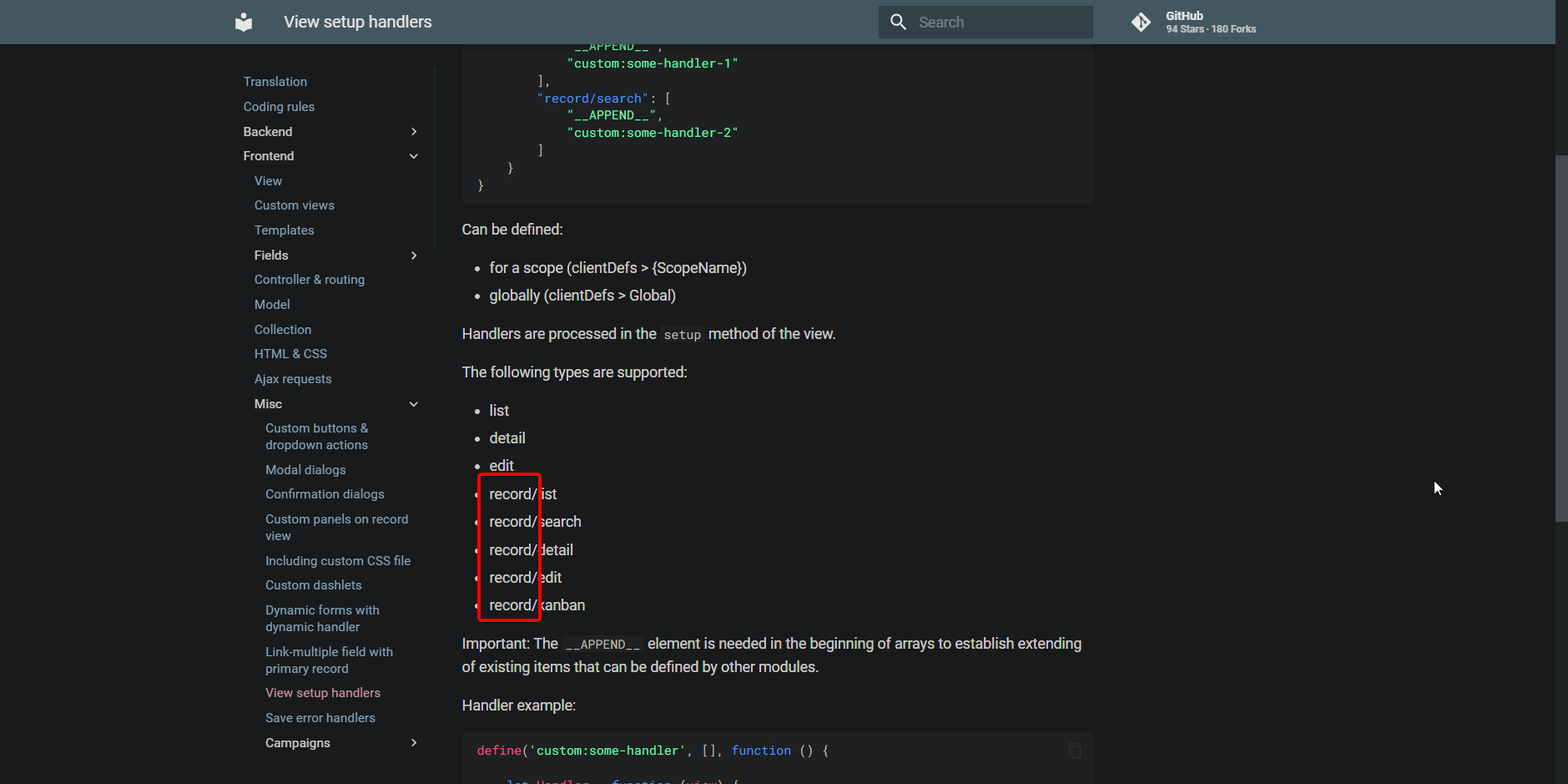 So I was wondering was is the difference (in espocrm in general not only in the view setup handlers) between the "normal" views like "list", "detail" and the "record" ones.