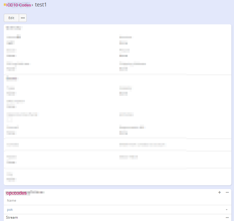 In the final version, in the Bottom Panels of the ICD10 Code entity, its children opccodes will look like in screenshot 3.