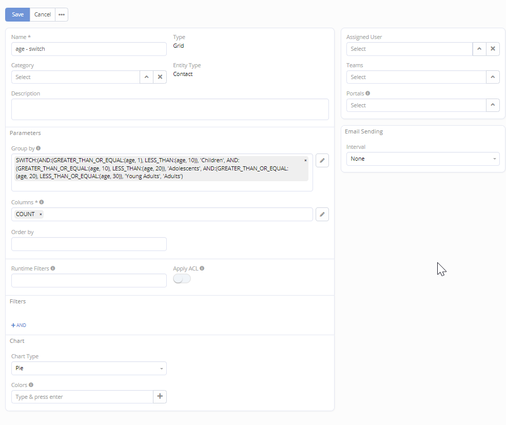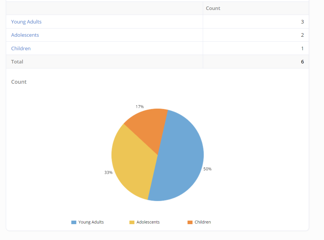 and then have a Pie chart with theses ranges and % (count) ?