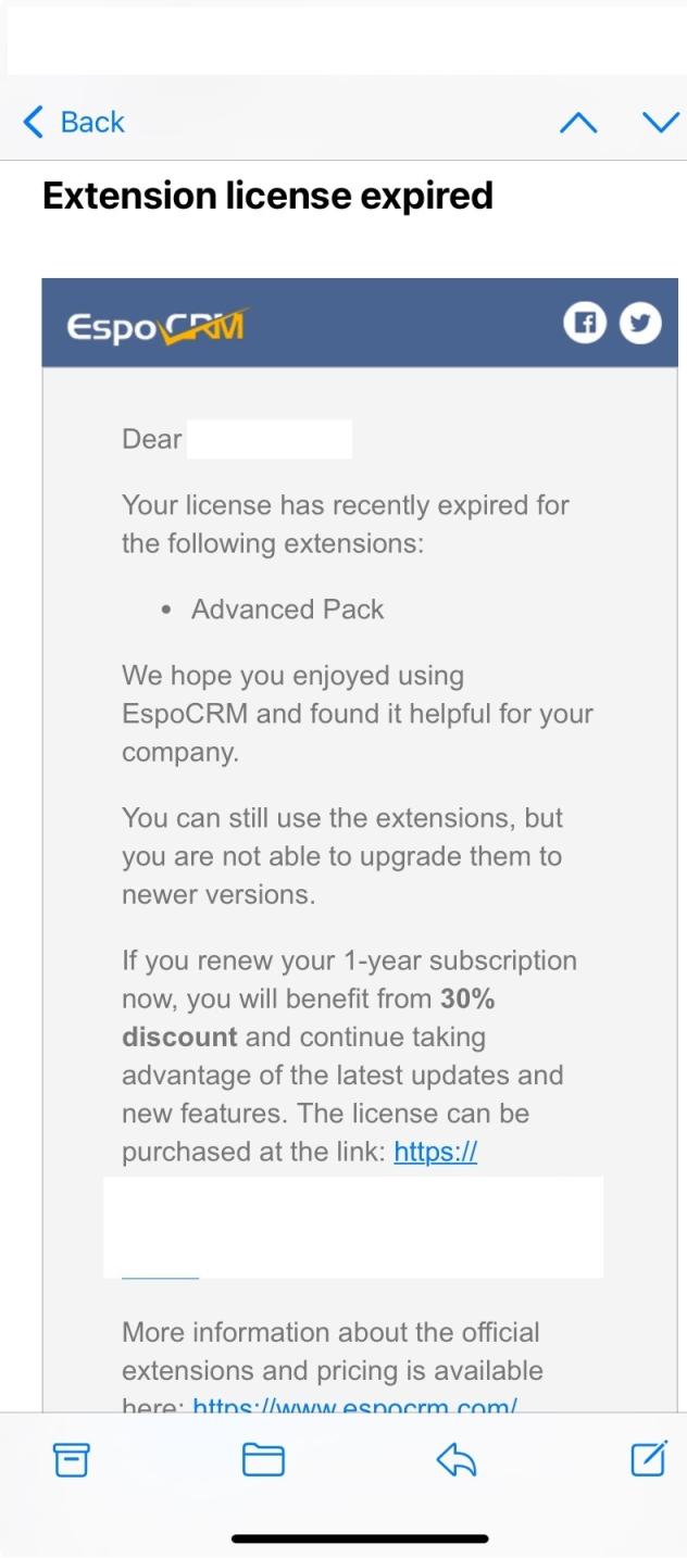 I do understand your point and as mentioned you should be rewarded for the years of effort you put into this amazing product. My point was about developers who brought clients into espocrm space like 2/3 years were they understood that the license for extension should be renewed when they feel the want to (which was a very attractive offer to them) now with the transition i personally have clients emailing me asking why they see the expiration message appears so i had to explain the new license which contradict what they knew before and kind of disappoint them. I always advise my clients to renew the license and they are happy to do it but most of them are tiny business and sometimes they don't have enough cash to renew a license, so the timing is key here. Also it would be nice if you consider a good discount to encourage clients to renew, currently there is only 10% on a year license renewal and 30% on two year renewal, maybe if that could be improve it would help both the clients and also ensure streaming revenue for you as clients would feel of renewing. As i mentioned a lot of clients are using espocrm because they run tiny businesses and still struggle financially hence why this change might be difficult for them.