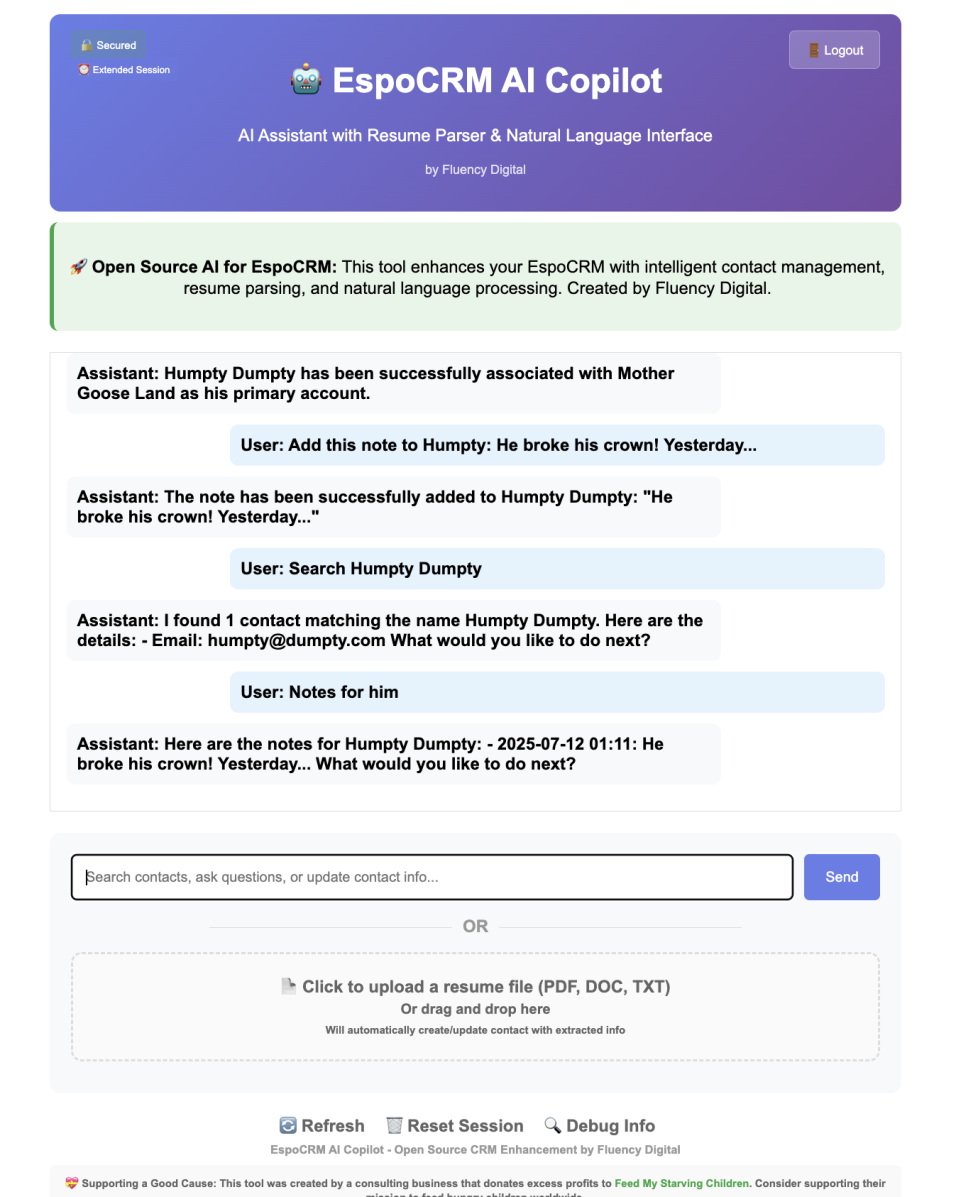 EspoCRM AI Copilot - Open Source Natural Language Assistant + Resume Parser