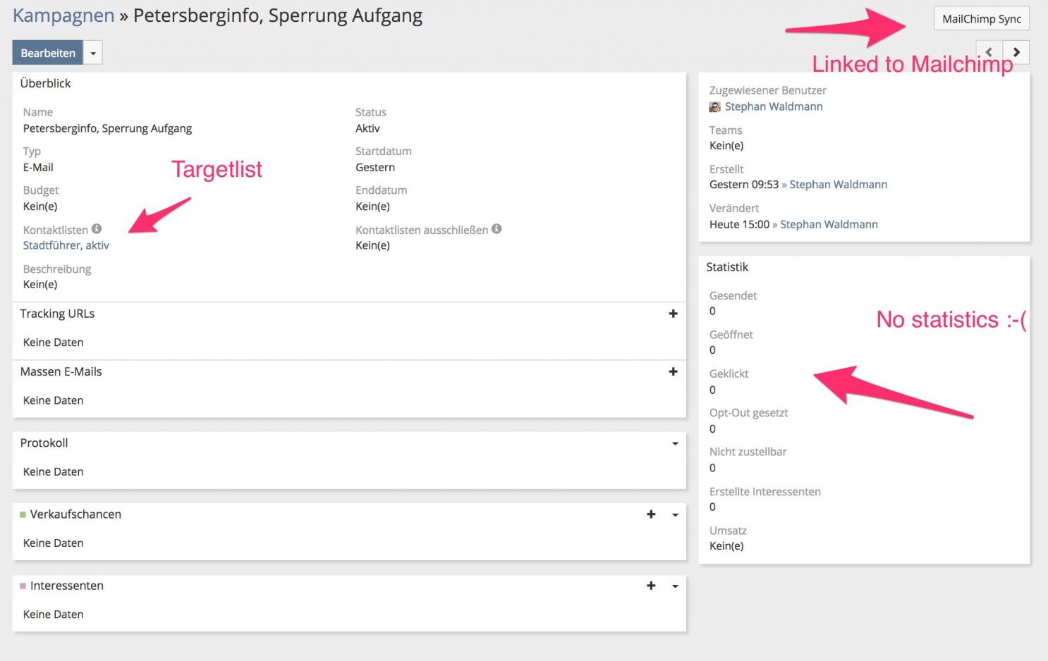 BTW, the Mailchimp-Sync-Button in campaign AND Targetlists is still grayed out...