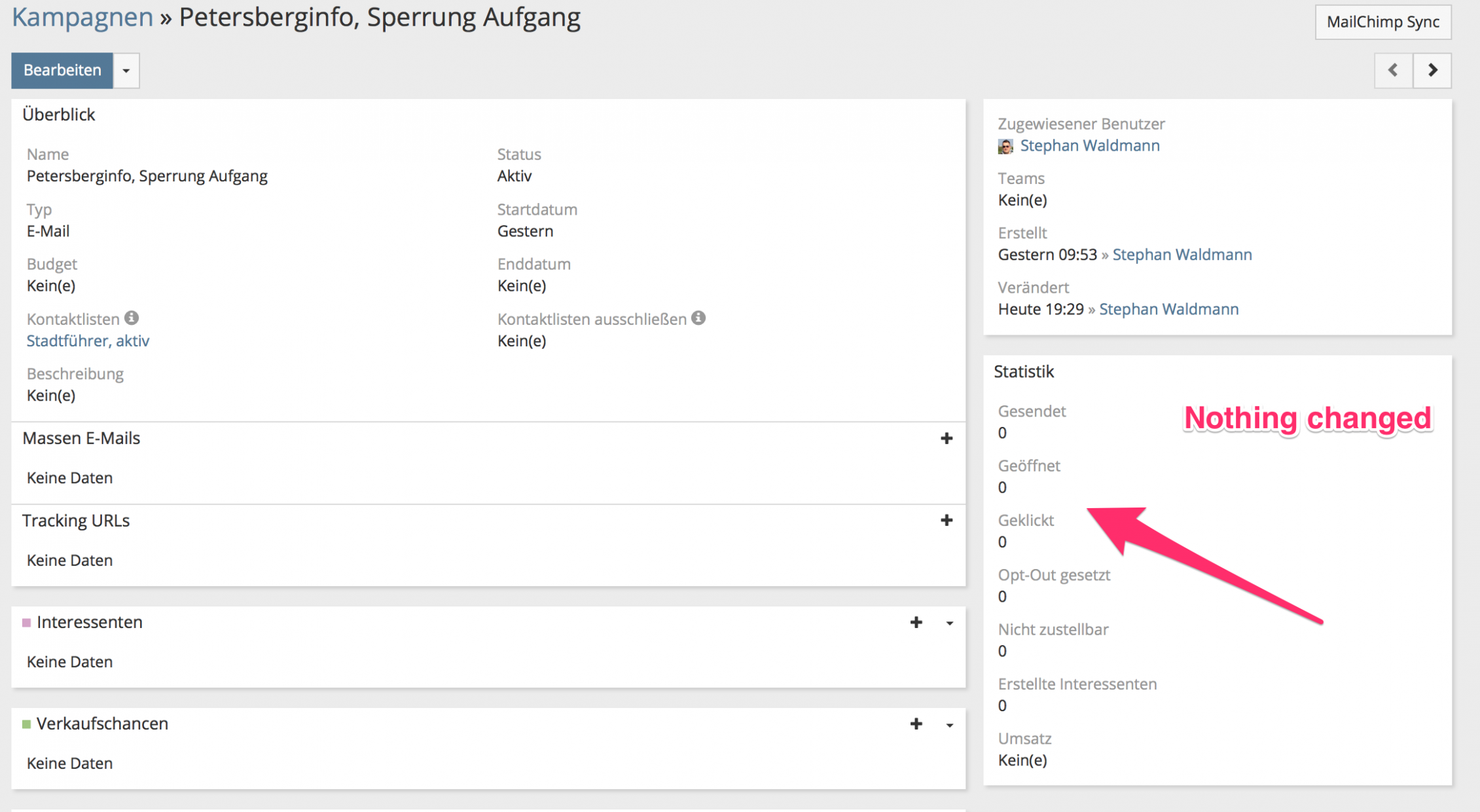 But now EspoCRM says: Campaign is synct (screenshot)