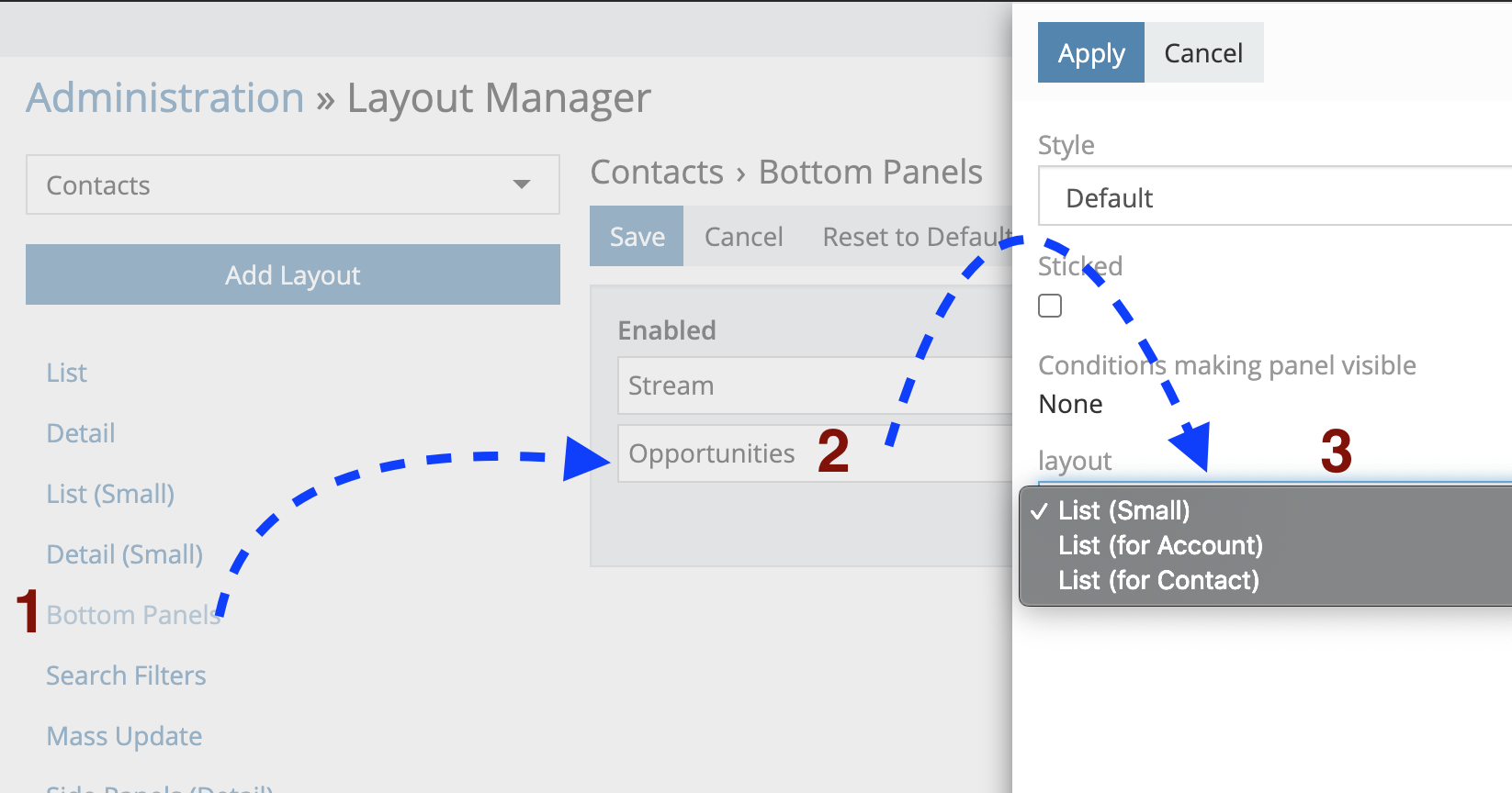 - Provides two additional layout types (Grid & Tabs), so you can set the default layout type for overall your crm app from the administration and can set individually for every entity in the layout manager.