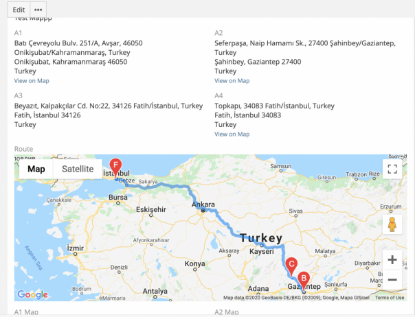 - Route Field: if your entity has multiple addresses you can draw a route between them
