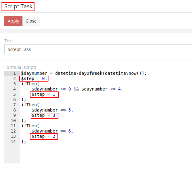 ifThen($daynumber == 5, datetime\addDays(datetime\now(), 3));