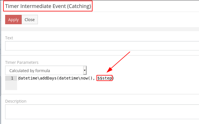 Please pay attantion I put $$ before 'step' in the Timer Intermediate Event regarding to this rule mentioned here https://docs.espocrm.com/administrat...d-http-request
