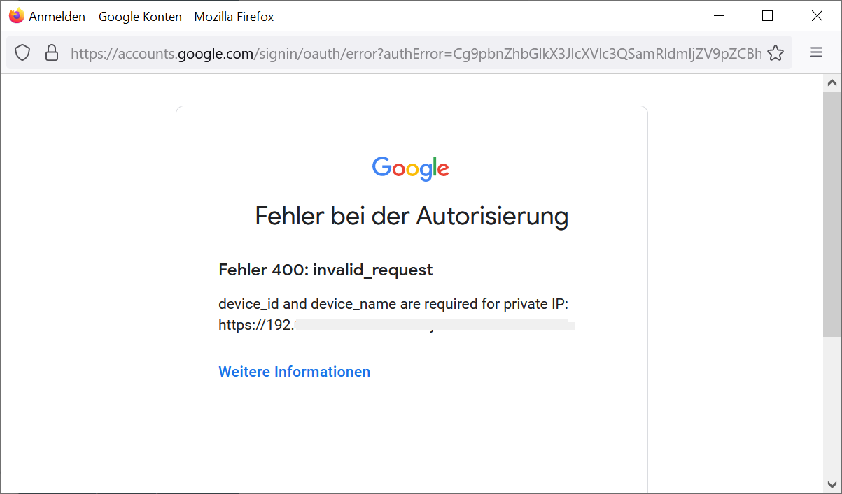 However, this does not work for me, because every time I want to connect to external accounts, the error code 400 comes.