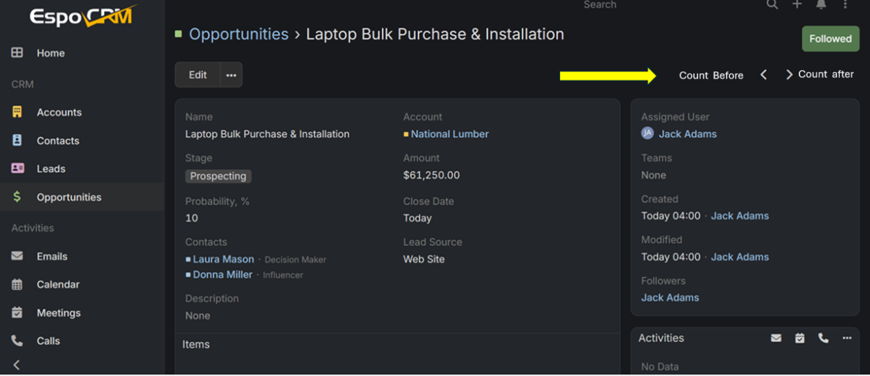 Count of records (before and after) in the detailed view of the record on the scroll button (see screenshot). The count should change based on the filters on which the record was opened in detailed view.