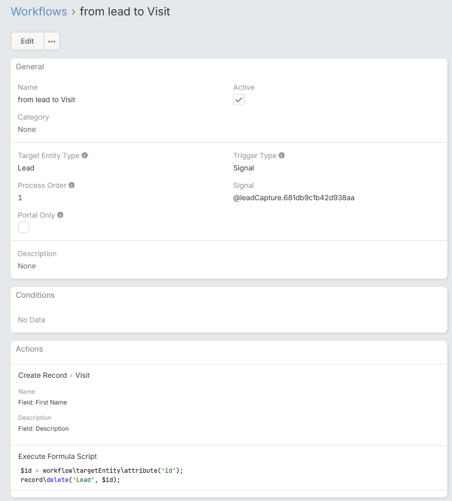 HTML Code:$id = workflow\targetEntity\attribute('id'); record\delete('Lead', $id);👍 1 -