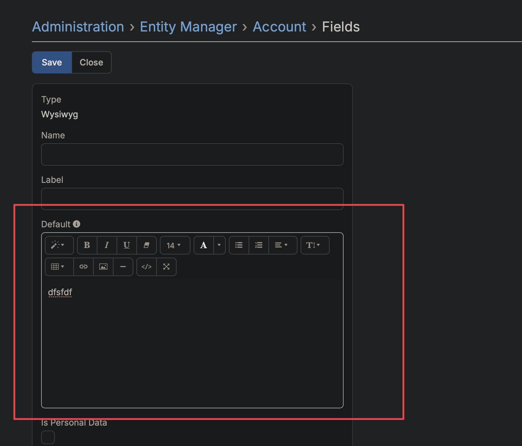 It would be great if we could use the texteditor in the default value of a custom field with type texteditor, so we could have some nicely formatted default values for fields in our Quotes for example.