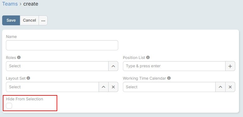 It would be beneficial to have a checkbox option (as illustrated in the attached example) that, when selected, hides the team from users in any “Teams” selection list. This would allow administrators to use teams for specific formulas or code logic that are not intended to be assigned to entities by end users.