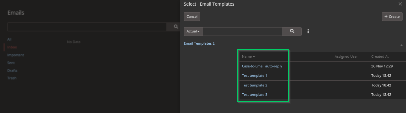 Like for example, we open the Email Template tab and "Name" is the default option to sort?