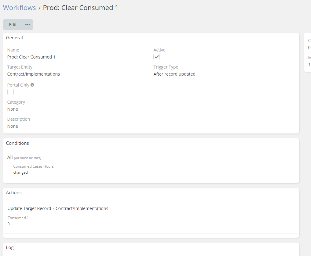 Update the record consumed1 to 0 when the Consumed Case Hour is changed