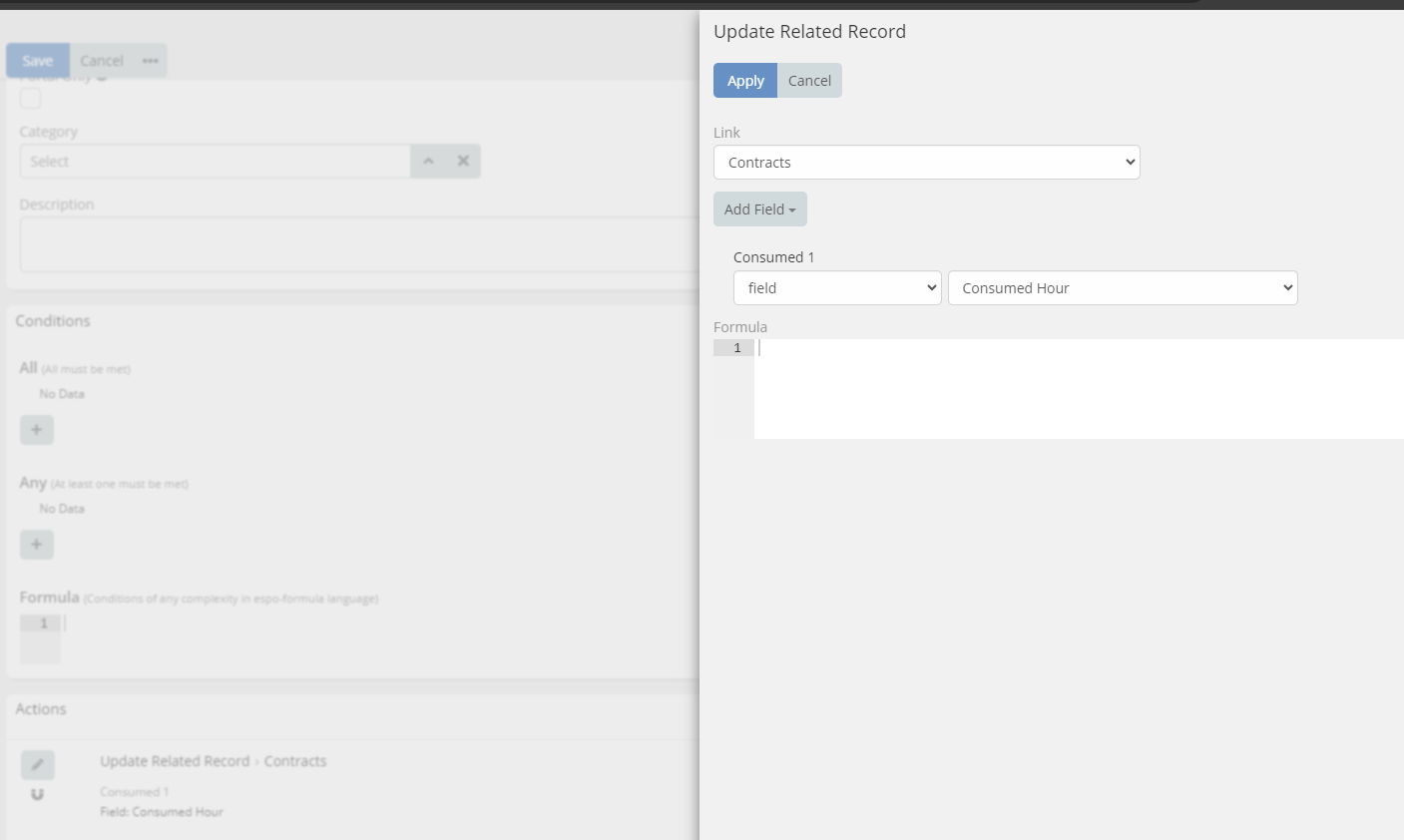 In "Case" we configured a read-only field "Consumed Hour" that the user only has one chance to fill in.