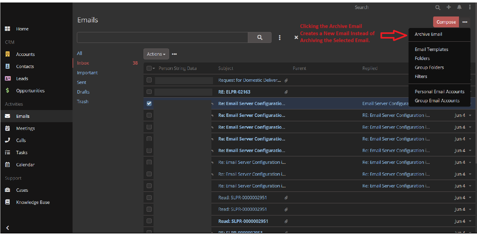 Archive Email Option is Creating a New Email Instead