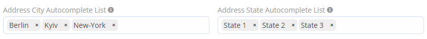 - For Address City Autocomplete List it's addressCityList.