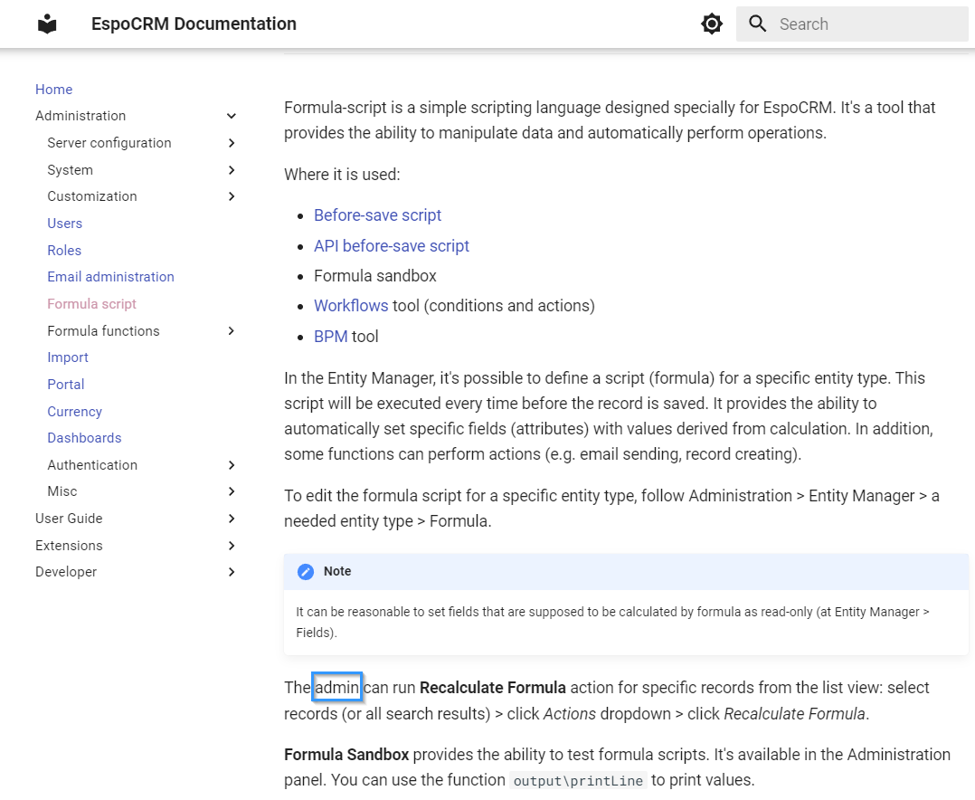 I see in updated installations, that the menu item "recalculate formula" is not present. As admin, it is still there, but for user with edit privileges it is gone.