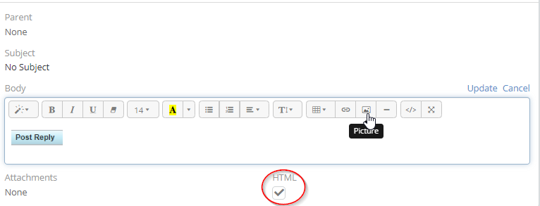 - When creating an email, make sure that the HTML option is enabled (screenshot 1).