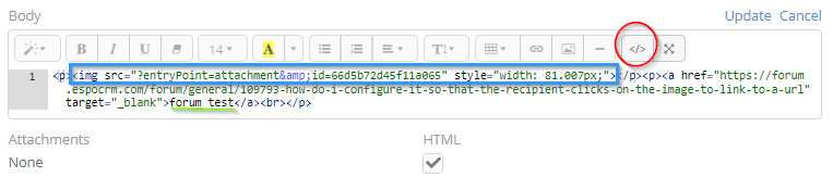 - Delete the redundant code and save the changes (screenshot 4). You should be left with something like this:Code:<img src="?entryPoint=attachment&id=66d5b72d45f11a065" style="width: 81.007px;">