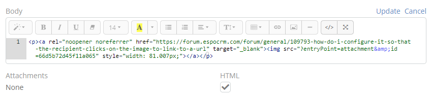 - You will get the result as in screenshot 5.Code:<p><a href="https://forum.espocrm.com/forum/general/109793-how-do-i-configure-it-so-that-the-recipient-clicks-on-the-image-to-link-to-a-url" target="_blank"><img src="?entryPoint=attachment&id=66d5b72d45f11a065" style="width: 81.007px;"></a></p>