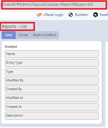 - /#Admin/layouts/scope=Report&type=list