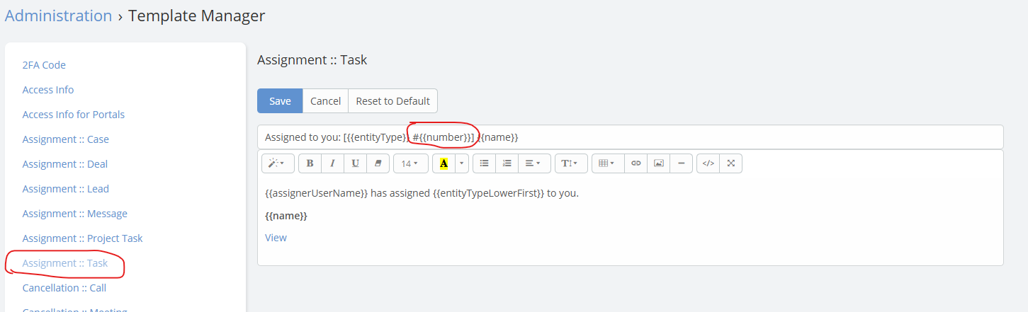In Template Manager I have "Assignment :: Task" template which looks like this: